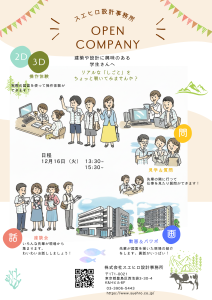 建築にちょっと興味があるという学生の皆さんに気軽に会社に足をはこんでいただきたく